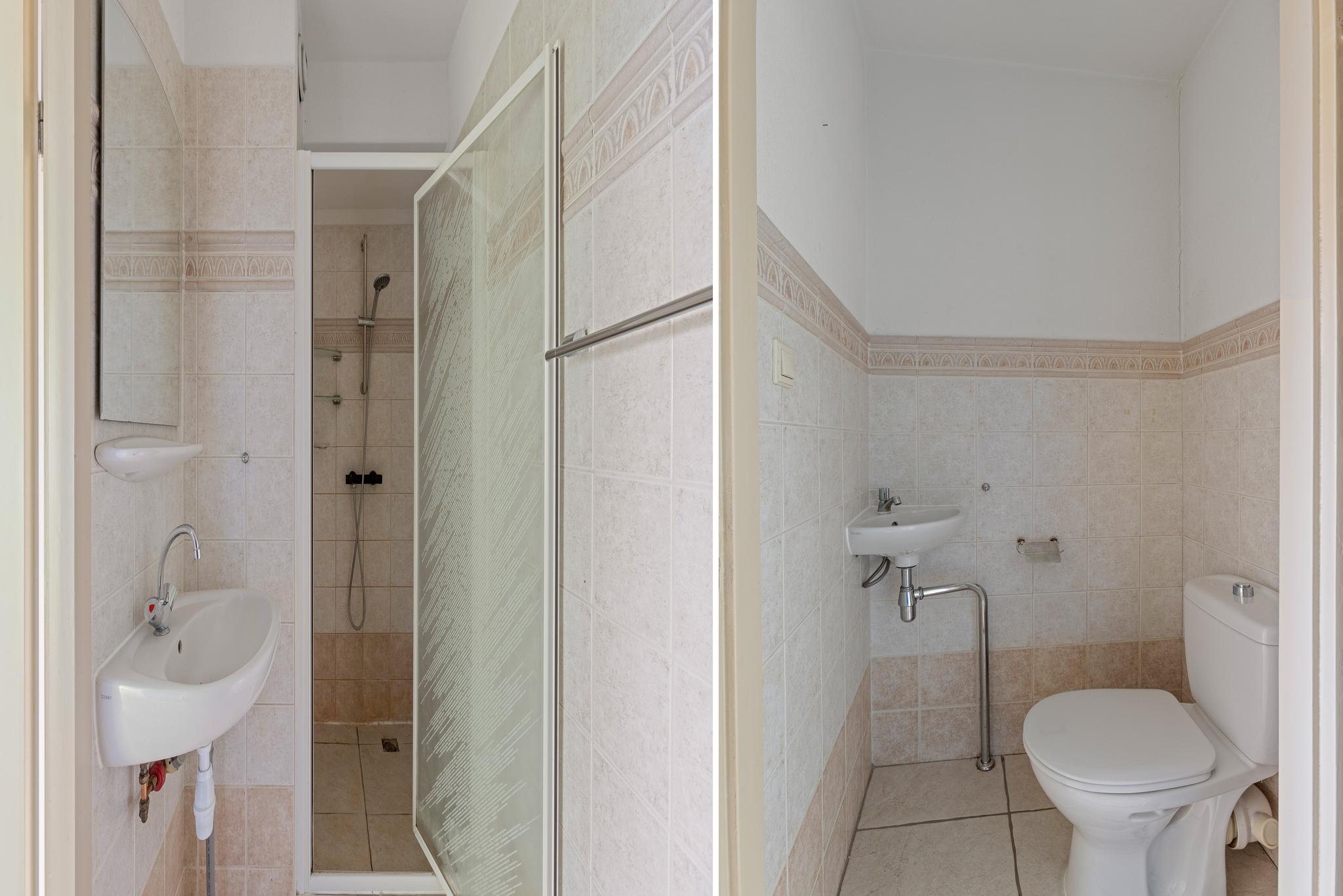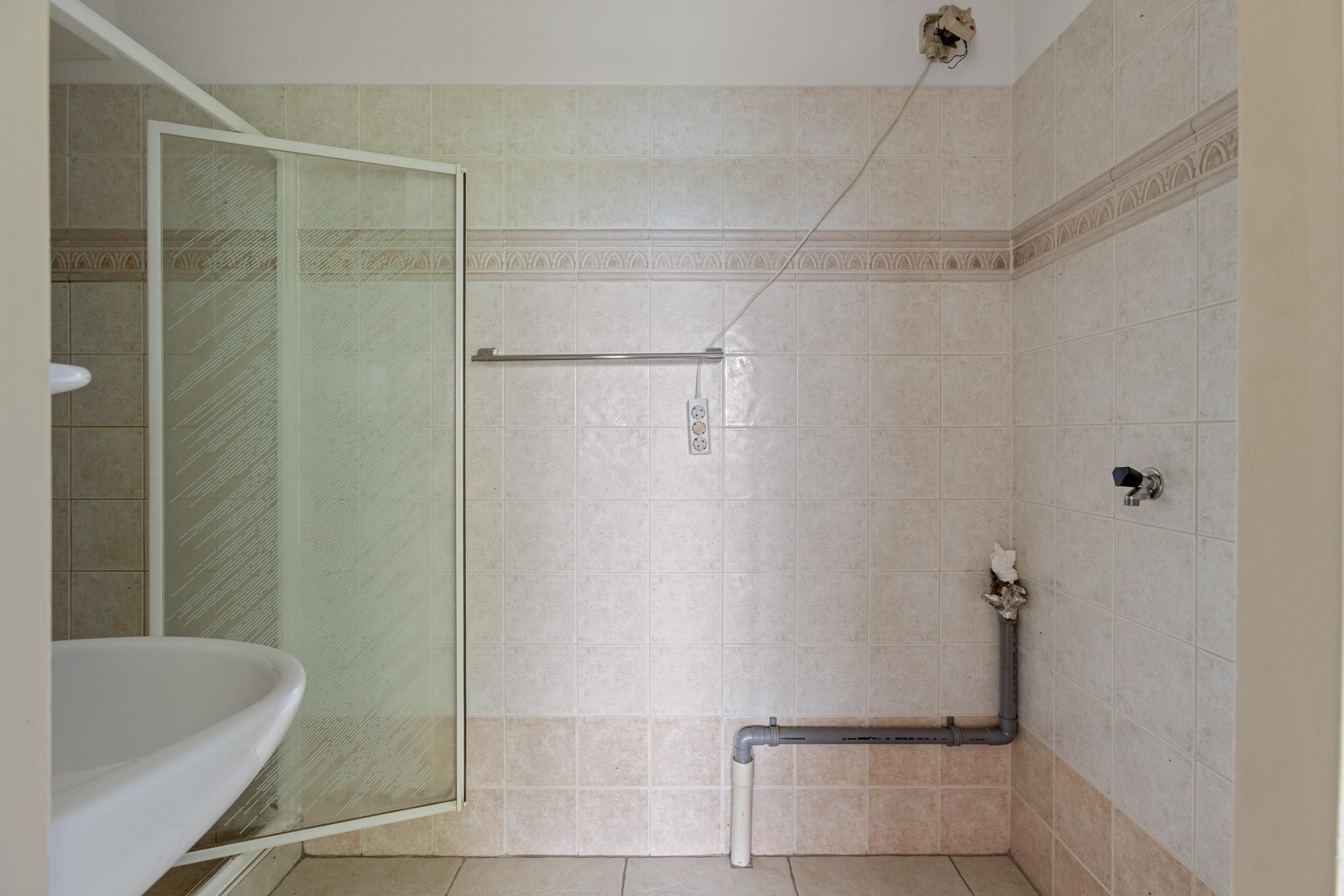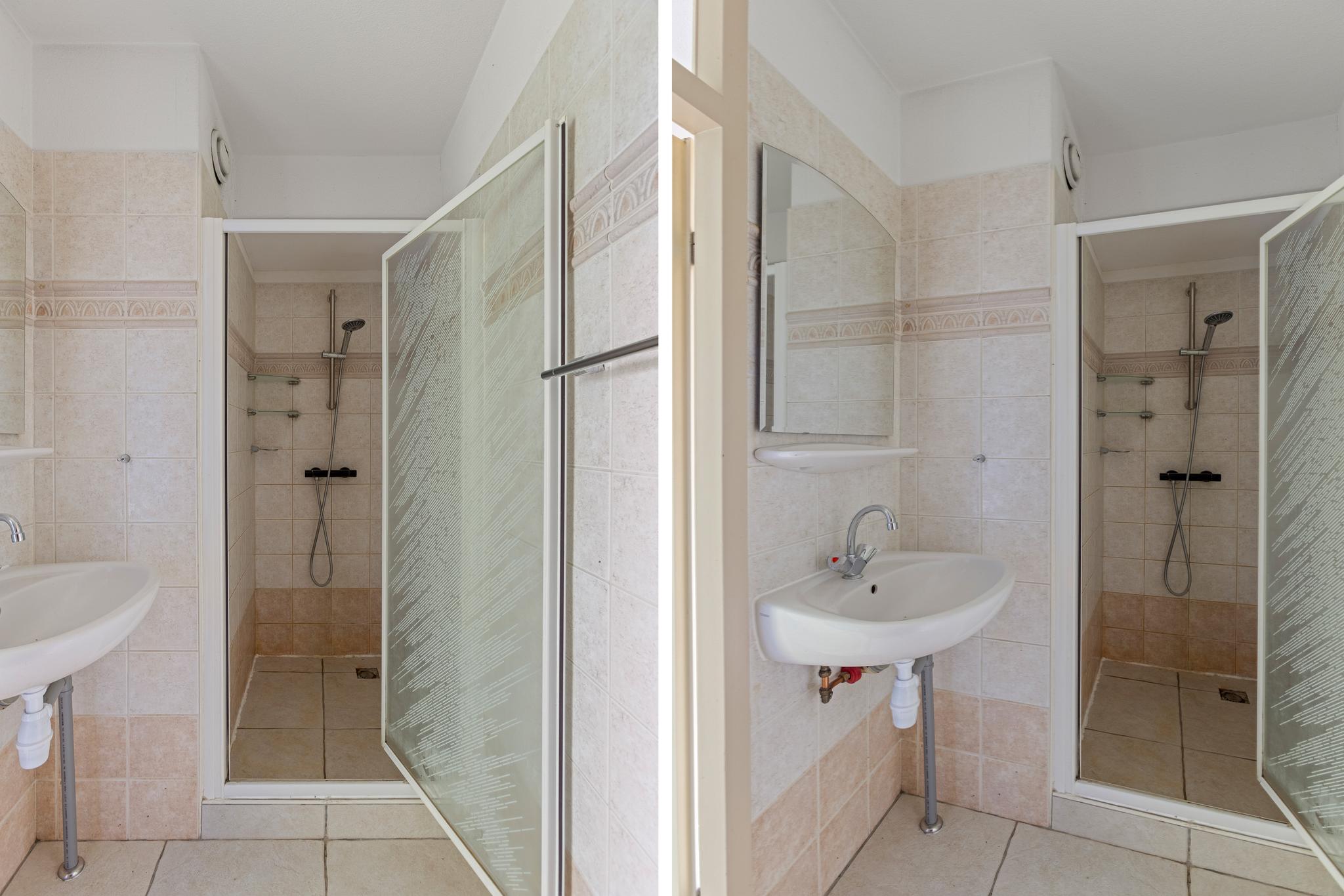 Inpandige badkamer, voorzien van een wastafel, een douchehoek met thermostaatkraan en wasmachine aansluiting.