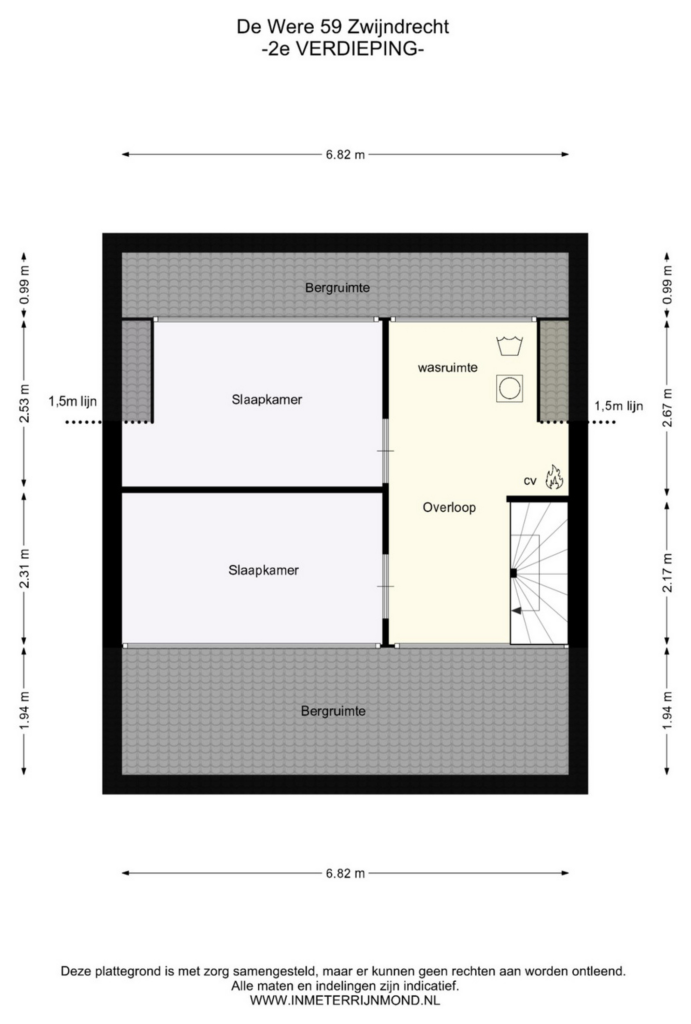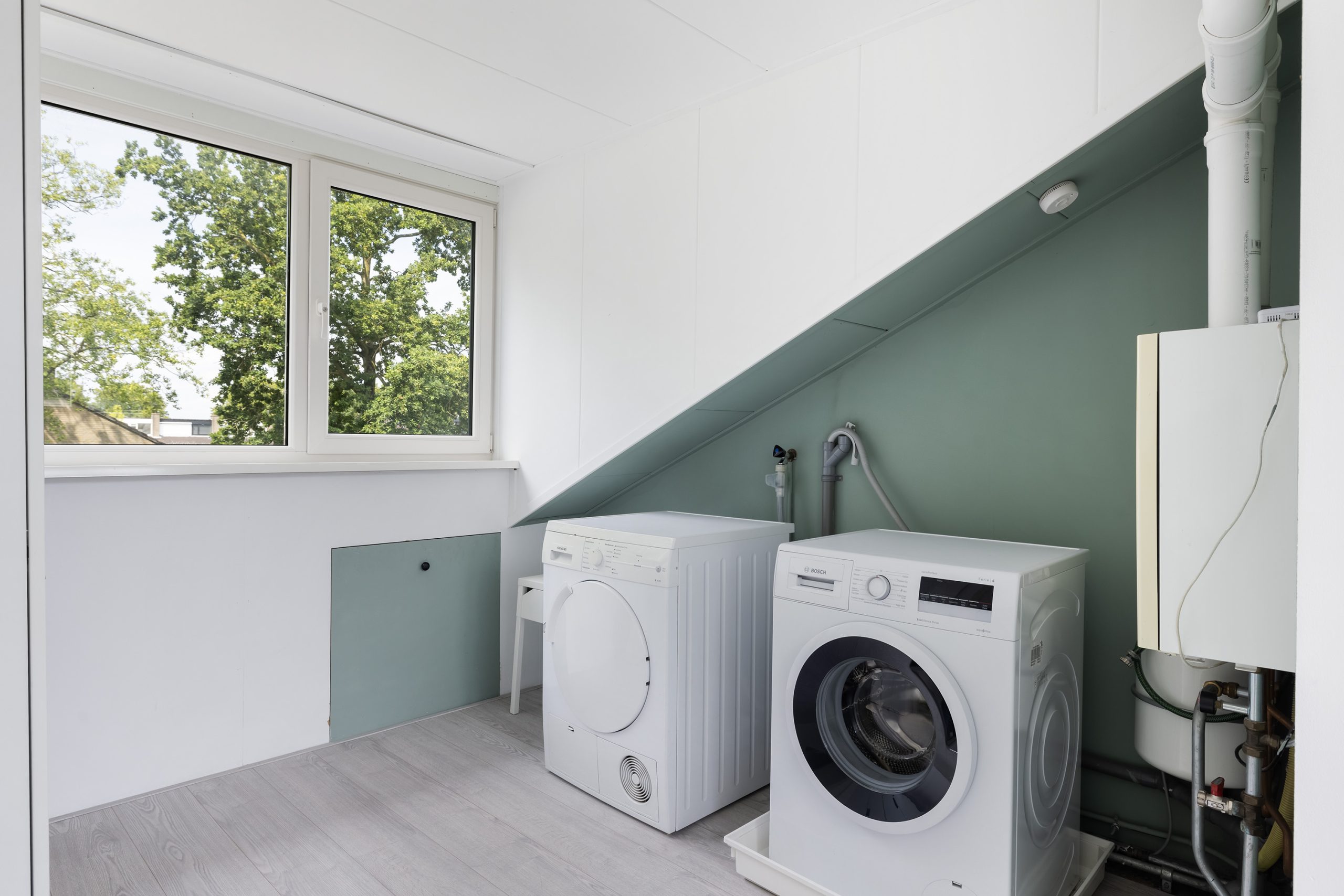 Wederom een grote overloop dit keer met was aansluiting en opstelling van de CV ketel (merk Remeha Avanta, bouwjaar 2011). Ook is hier veel bergruimte onder het schuine dak. Rolluik aan de voor-en de achterzijde.