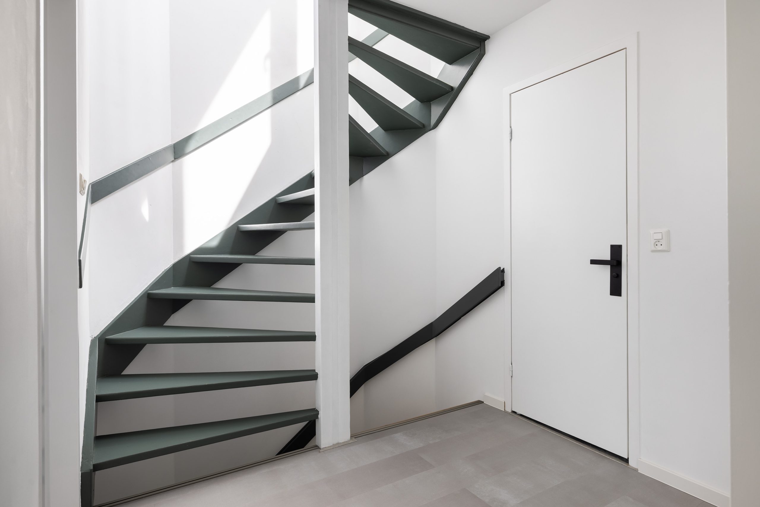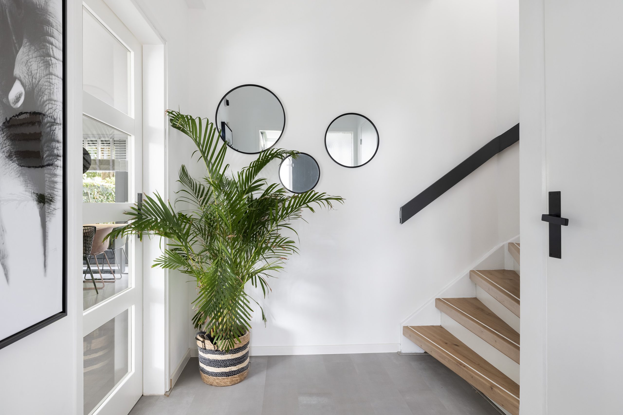 Grote hal met ook hier een grote kast onder de trap voor extra bergruimte, toegang tot de woonkamer en trapopgang naar de verdieping.
