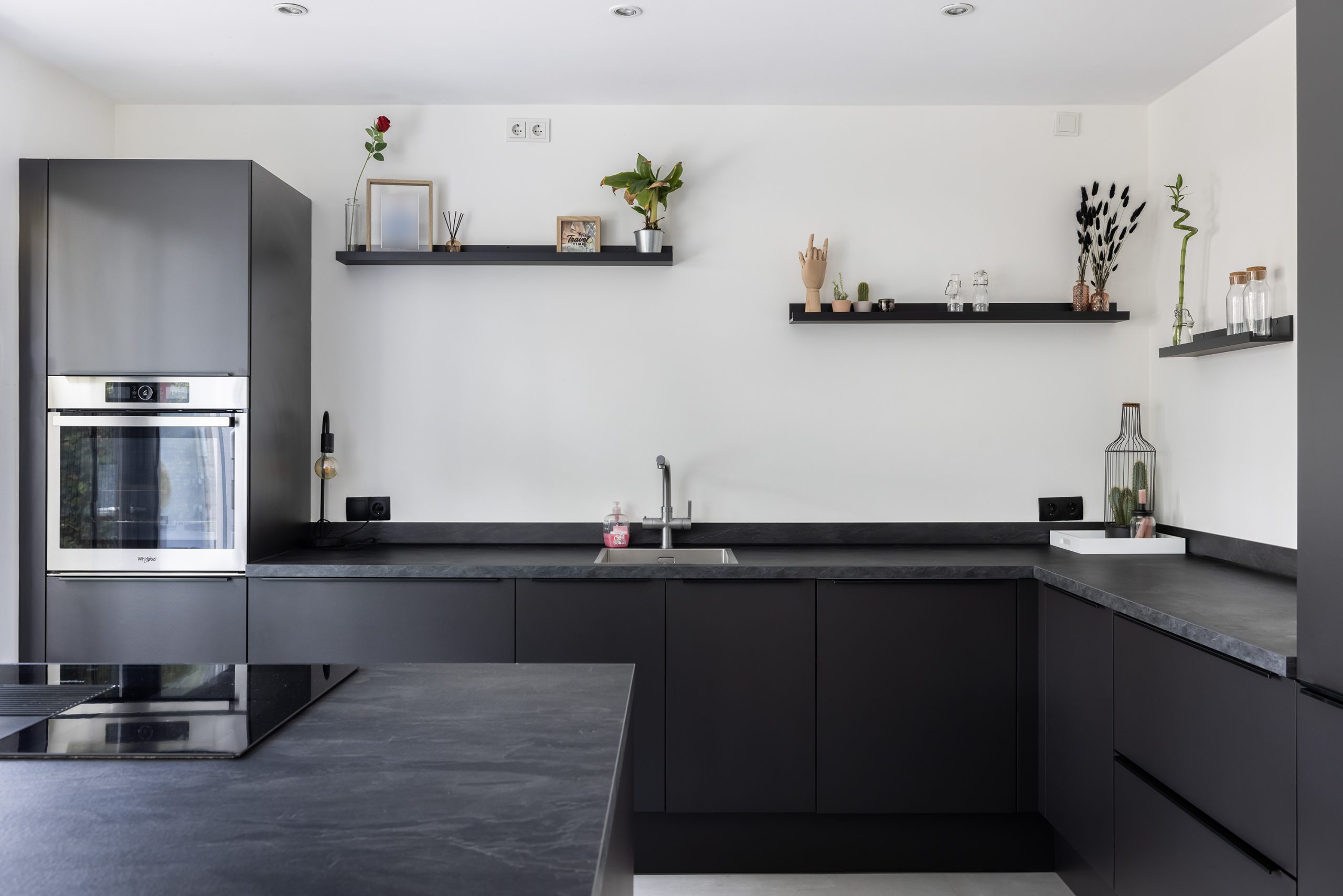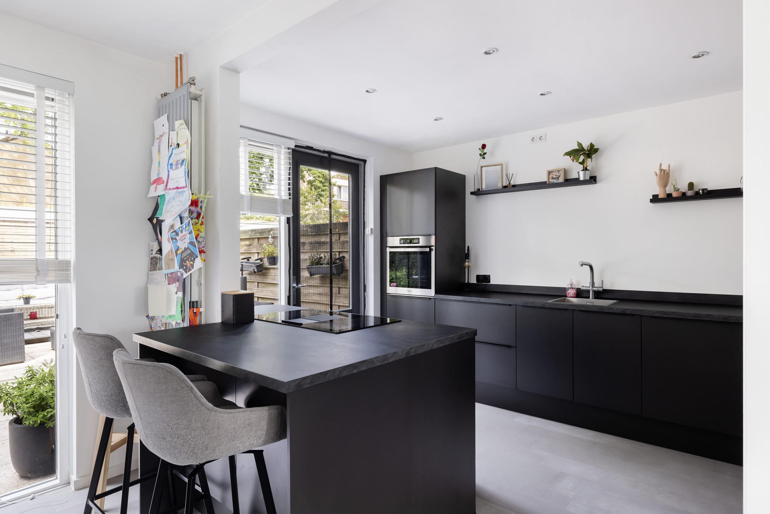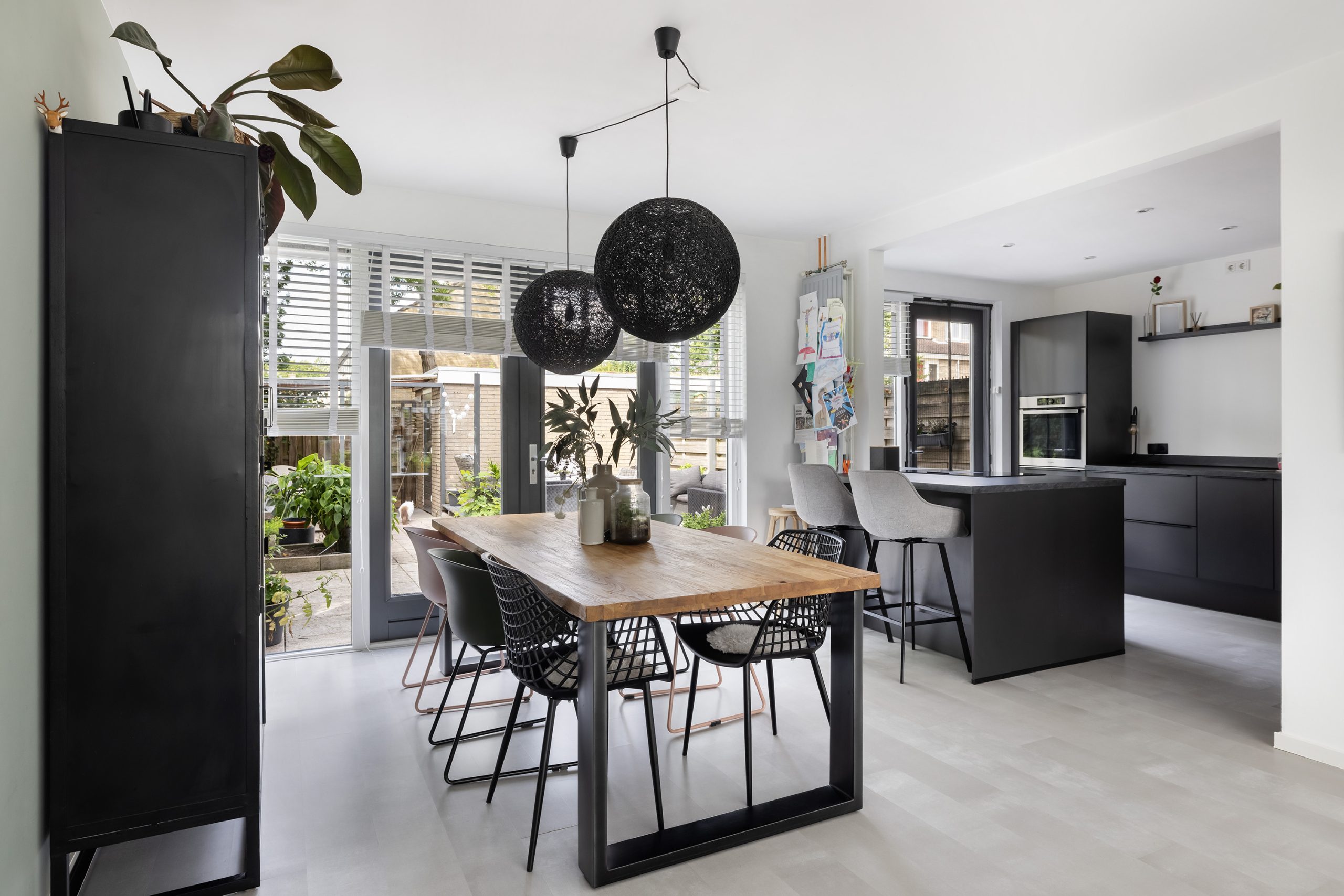 Binnen voelt het licht en ruim door de vele ramen en slimme indeling. En dan hebben we het nog niet eens gehad over de strakke zwarte keuken met gezellige bar… Kookinspiratie gegarandeerd, iedereen is welkom om een hapje mee te eten!