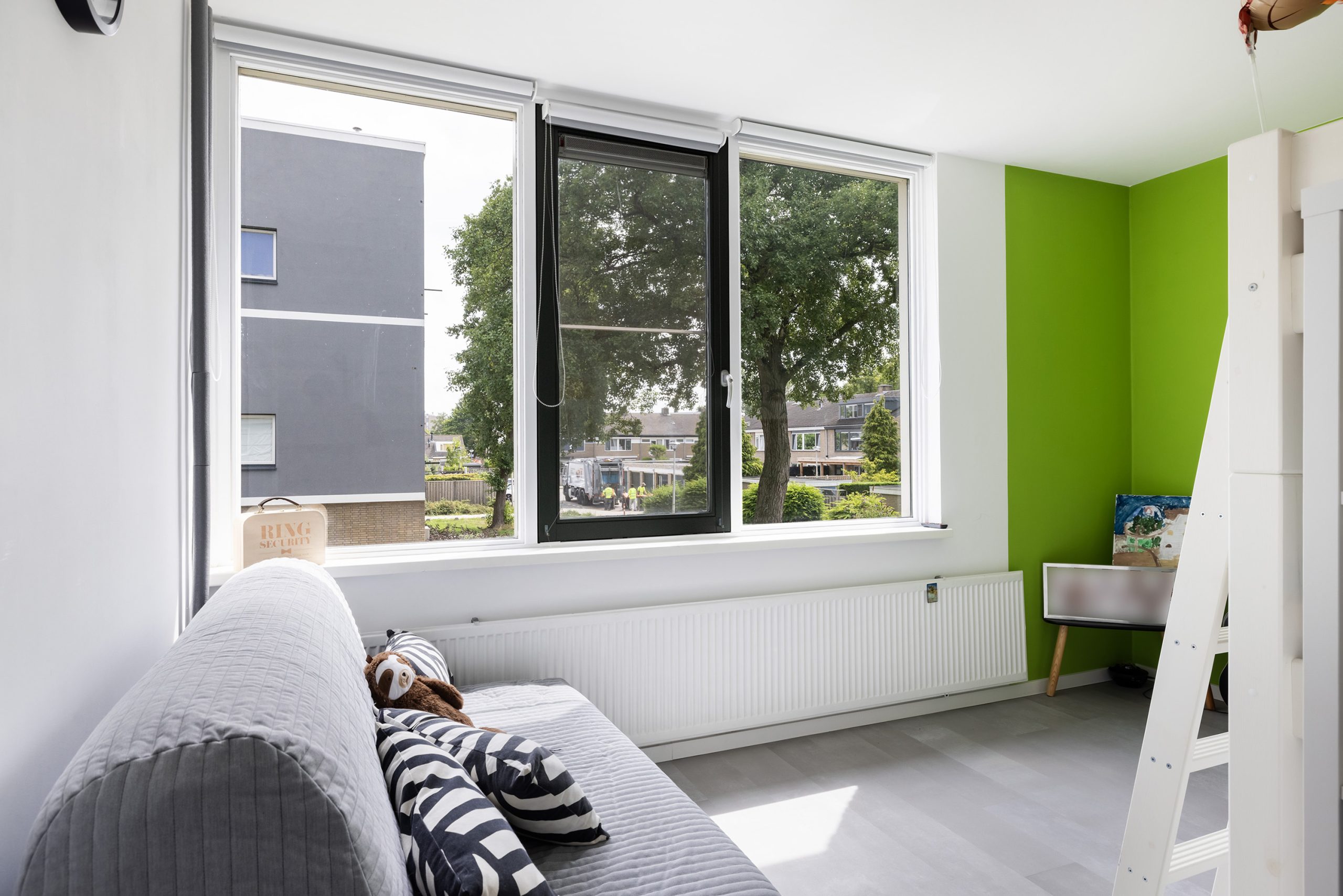 Alle kozijnen op de tweede verdieping zijn vervangen door kunststof met dubbel glas.