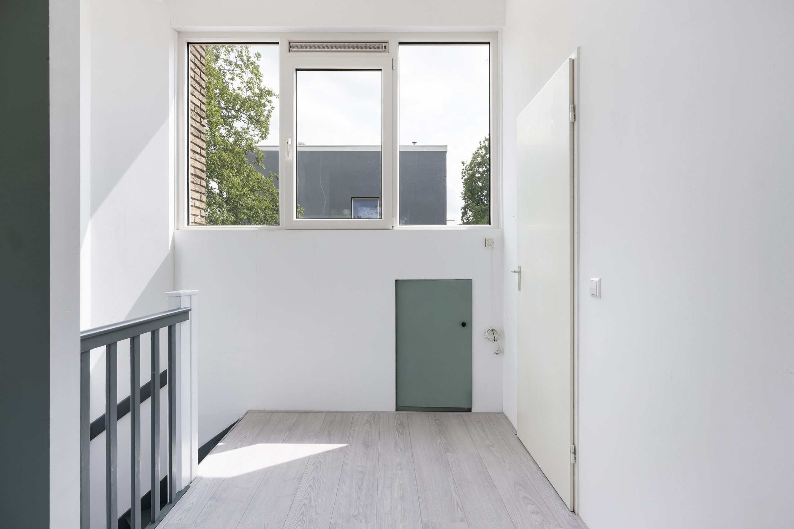 Door de plaatsing van een grote dakkapel met rolluik zijn er op deze verdieping 2 hele royale kamers gemaakt.