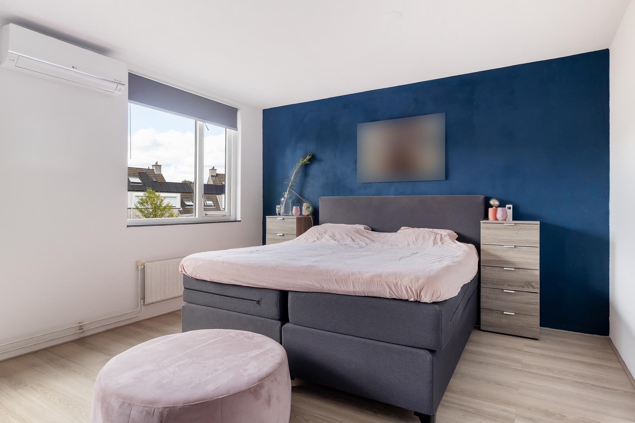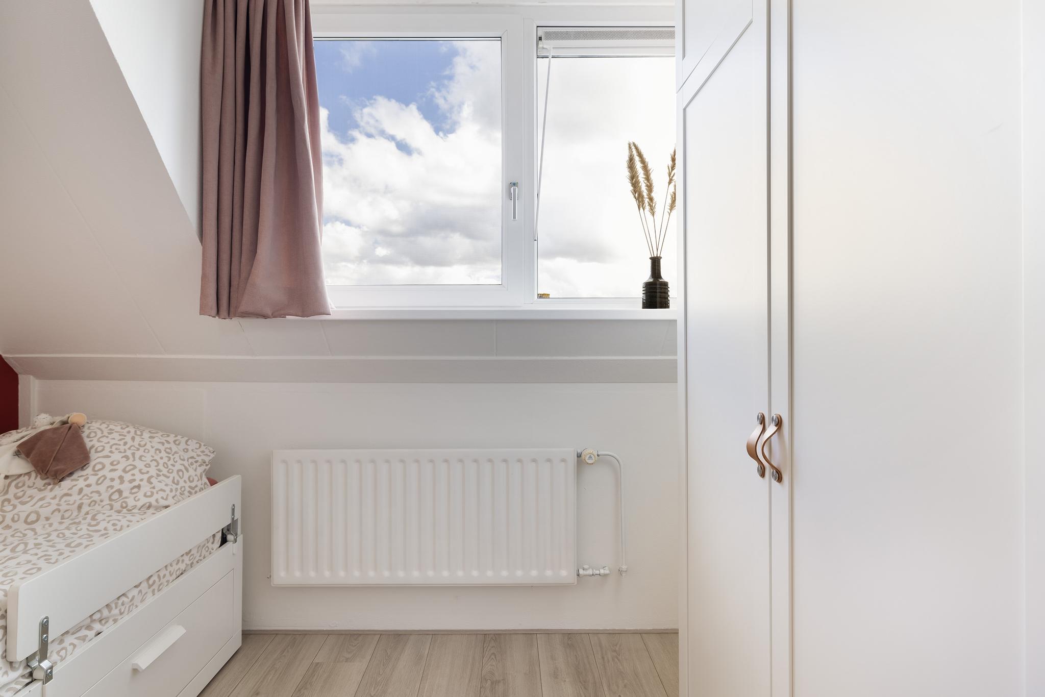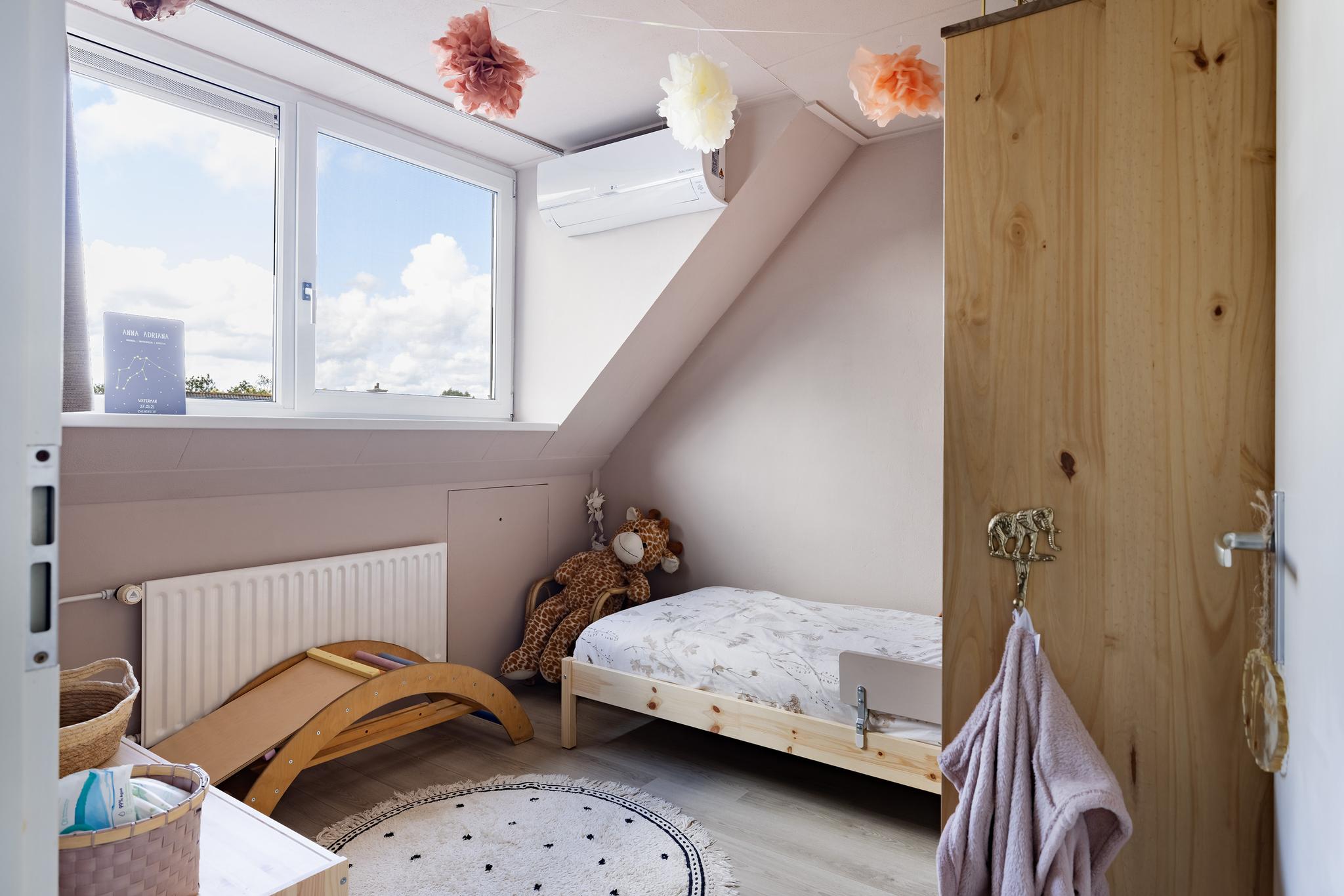 Slaapkamer aan achterzijde, eveneens voorzien van een dakkapel met kunststof kozijnen en airconditioning (2023).