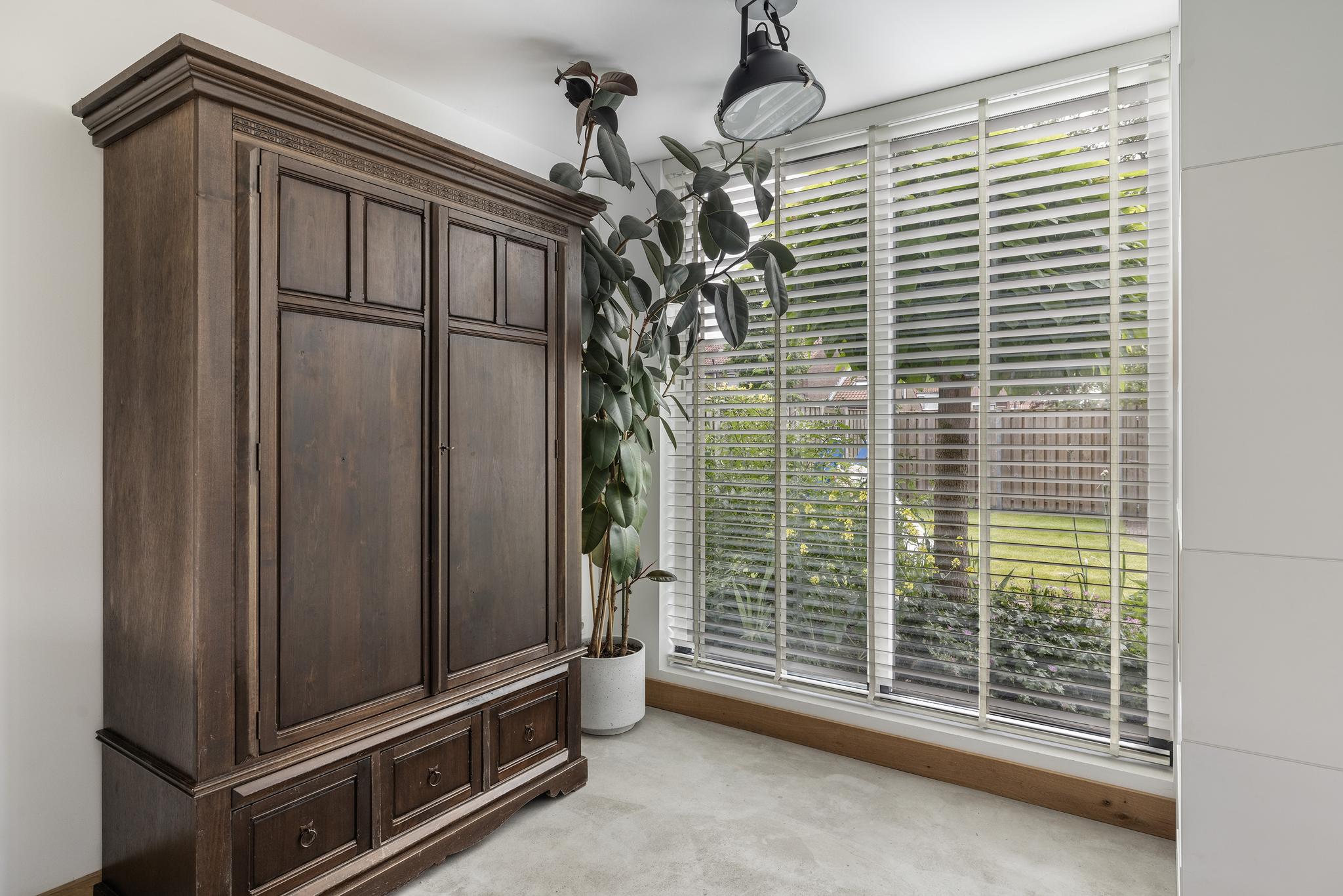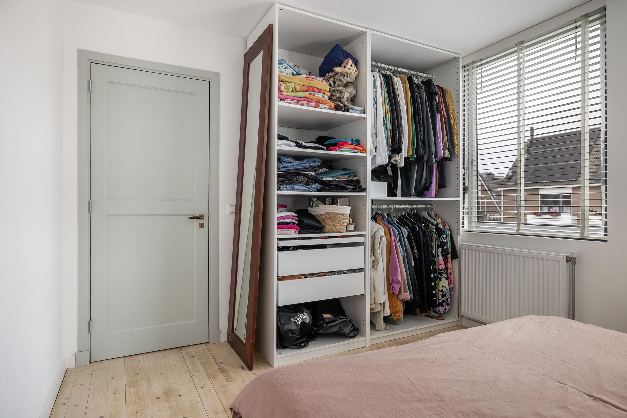 Ruime slaapkamer boven de zijuitbouw, voorzien van een inbouwkasten en een zij- en dakraam.