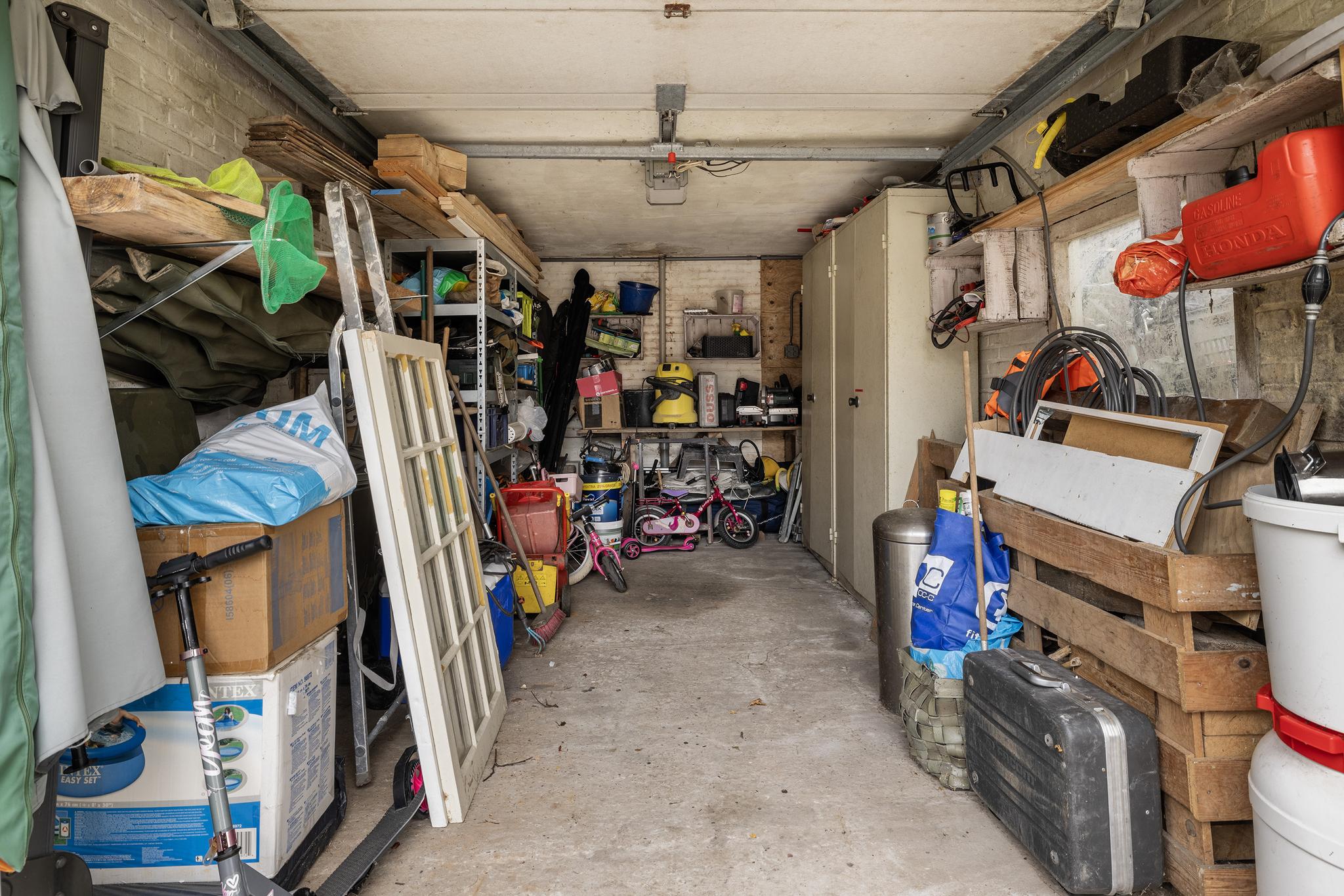 Via de achterom in de tuin is de garage bereikbaar. Deze stenen garage is voorzien van een elektrische roldeur, een eigen groepenkast (5 groepen) en aansluiting voor een laadpunt. Voor de garage is er voldoende ruimte voor een parkeerplaats op eigen terrein.